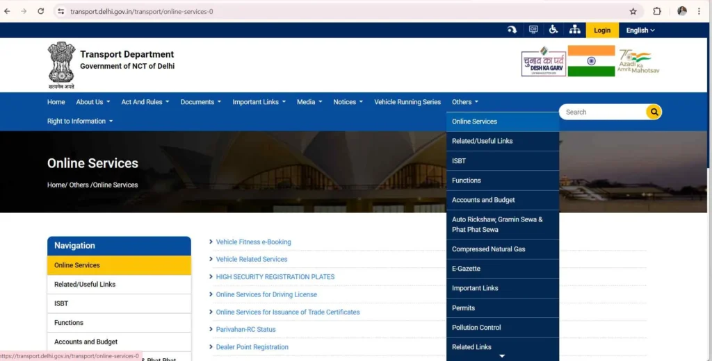 - Step 1: Visit the website(https://transport.delhi.gov.in/) of the transport department of the government of NCT of Delhi.